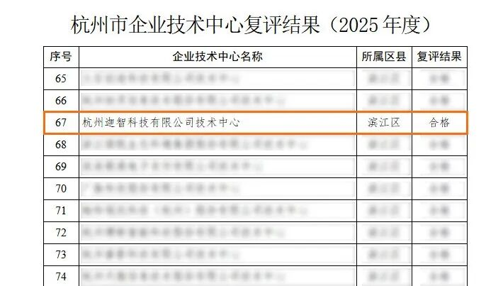近日,杭州市经济和信息化局(杭州市数字经济局)正式发布2025年度市级企业技术中心复评结果,迦智科技企业技术中心成功通过评审,公司技术实力与创新能力再获官方肯定。