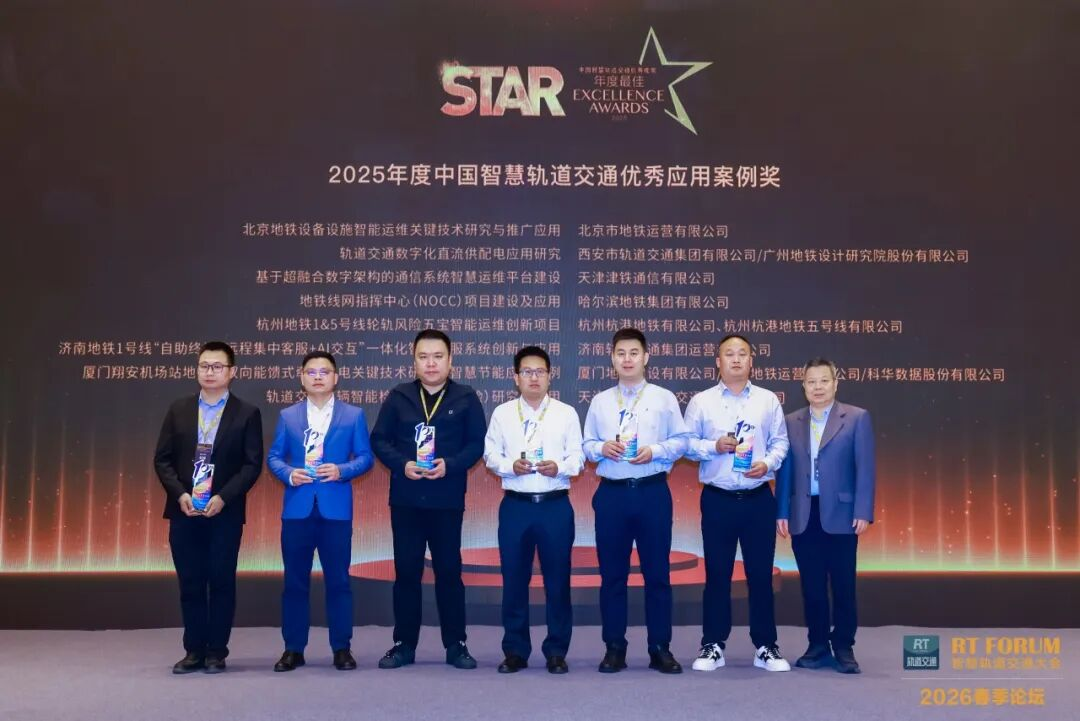近日,第十届中国智慧轨道交通大会在上海隆重召开。来自全国轨道交通行业的业主、设计院、总包及集成商等行业精英齐聚一堂,共商轨道交通高质量可持续发展之路。科华数据应邀出席并斩获行业大奖,其与厦门地铁建设有限公司、厦门地铁运营有限公司联合申报的《厦门翔安机场站地铁用双向能馈式牵引供电关键技术研究及智慧节能应用案例》,荣获 “2025 年度中国智慧轨道交通优秀应用案例奖”。