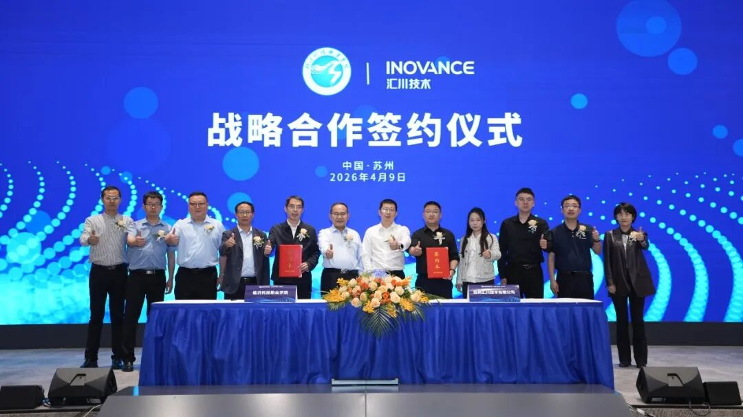 2026 年 4 月 9 日,临沂科技职业学院与汇川技术战略合作签约仪式在苏州汇川技术总部圆满举行。临沂科技职业学院党委书记沈如茂与汇川技术全球工业自动化(中国)轮值总裁刘东旭代表双方签署协议,标志着双方合作正式提升为“人才培养-技术创新-产业升级”的全方位战略协同