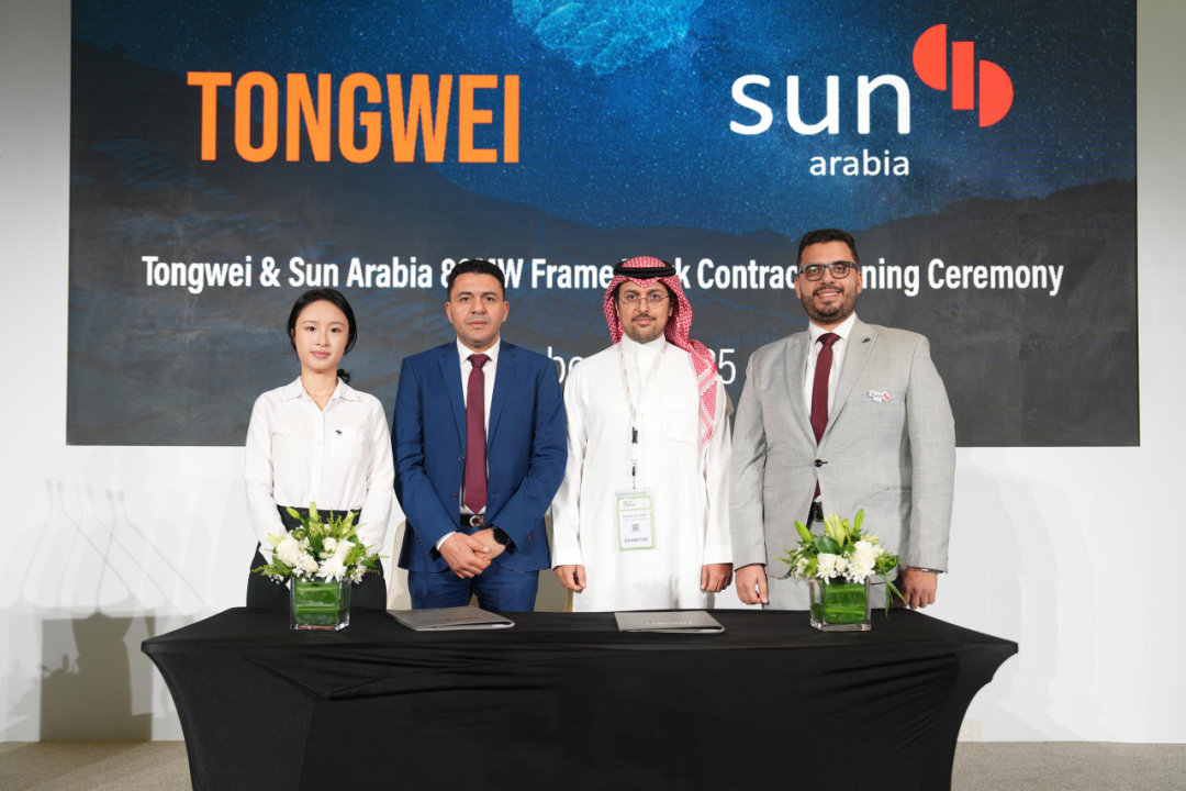 Sun Arabia成立于2022年,是沙特本地领先的绿色能源解决方案提供商,在光伏系统集成与项目实施方面拥有丰富经验,已完成多个成功项目。此次合作为双方首次携手,对通威进一步打开沙特日益增长的工商业光伏市场具有重要意义。