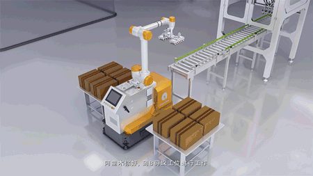 ● 无缝衔接不同产线: 一台机器人可服务于多条产线,根据系统指令或预设条件,自主前往不同产线末端执行码垛任务,实现资源的动态最优配置。