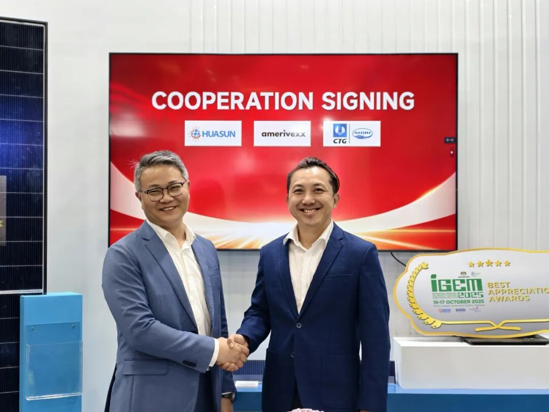 2025年10月17日,于马来西亚吉隆坡举办的2025年马来西亚国际绿色环保能源展(IGEM 2025)上,全球高效异质结技术领军企业华晟新能源,与中国三峡集团旗下上海勘测设计研究院有限公司及马来西亚本土开发商Amerivexx Sdn Bhd共同宣布,正式达成三方项目开发合作。