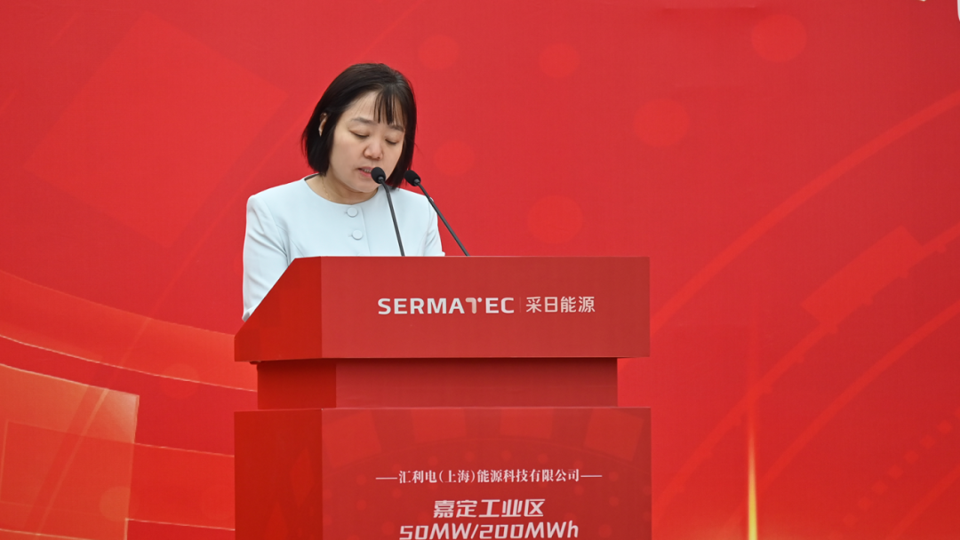 上海电力设计院有限公司总会计师张黛女士作为总包方代表发言。她表示:“储能是构建未来能源体系的核心环节,上海电力设计院将秉持科学施工、严格质量管理、健全责任体系的原则,与各参建单位密切协作、聚力攻坚,确保高质量、高效率完成建设任务,全力将本项目打造为经得起检验的优质金牌工程,助力嘉定工业区独立储能电站按期并网。”