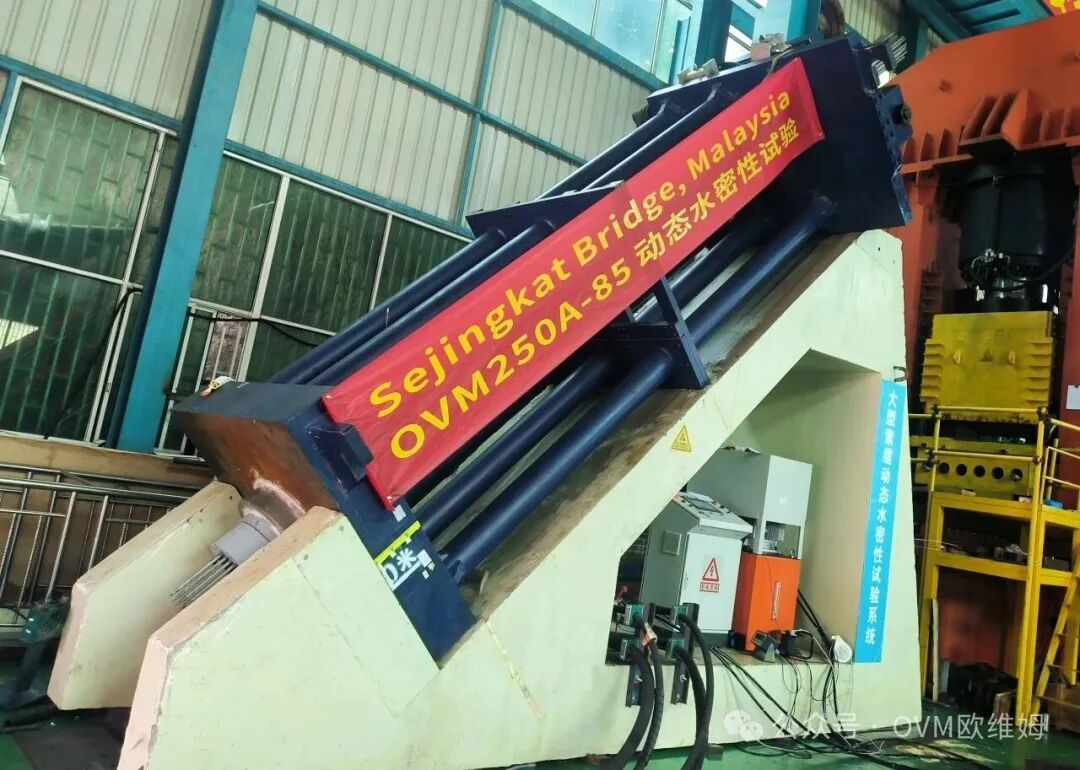 近期,目前行业最大规格钢绞线拉索——欧维姆大孔位钢绞线拉索顺利完成第三方试验室关键性能系列试验(包括带索鞍疲劳及疲劳后拉伸试验、动态水密性试验)。这是迄今为止行业内开展的孔位最大带索鞍钢绞线拉索试验。