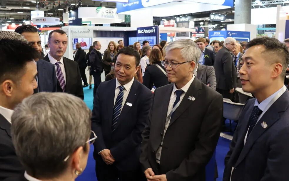 在东方电气集团展台,张彦军热情接待了法国核工业协会(Gifen)和法中电力协会(PFCE)高级访问组,法国电力集团(EDF)旗下Arabelle Solutions公司CEO凯瑟琳·科南德,法马通(法国)高级执行副总裁贝尔纳·维尔,中核集团党组成员、副总经理辛锋,中广核电力股份有限公司副总裁周建平,中国核能行业协会常务副理事长曹述栋等嘉宾。