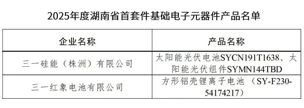 近日,2025年度湖南省首套件基础电子元器件产品名单公布,三一集团旗下三一硅能与三一红象的多款产品成功入选,充分彰显了其在新能源领域强大的研发创新能力与高端制造水平。