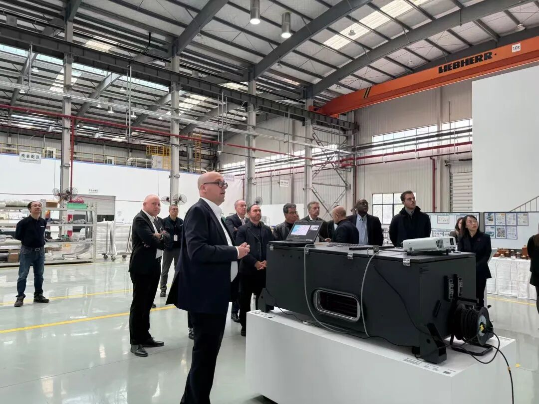 代表团在利勃海尔平湖工厂进行了约一小时的参观交流。访问内容包括公司介绍、生产车间参观以及区域项目和生产能力展示。