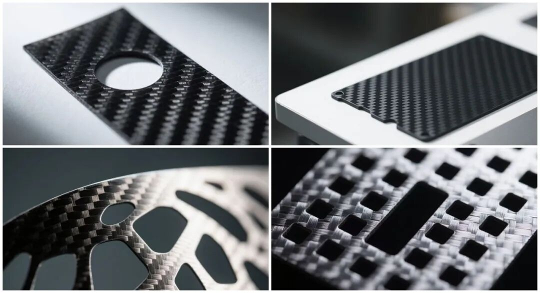 在碳纤维复材的生产过程中,成型加工方法对成品质量起着至关重要的作用。由于碳纤维强度高、脆性大,传统机械切削方法容易造成刀具磨损,不仅成本较高,且容易导致材料破裂、变形等不良问题。特别是碳纤维板开孔工艺,更加容易造成材料加工不良甚至报废,高精度批量加工难度大。