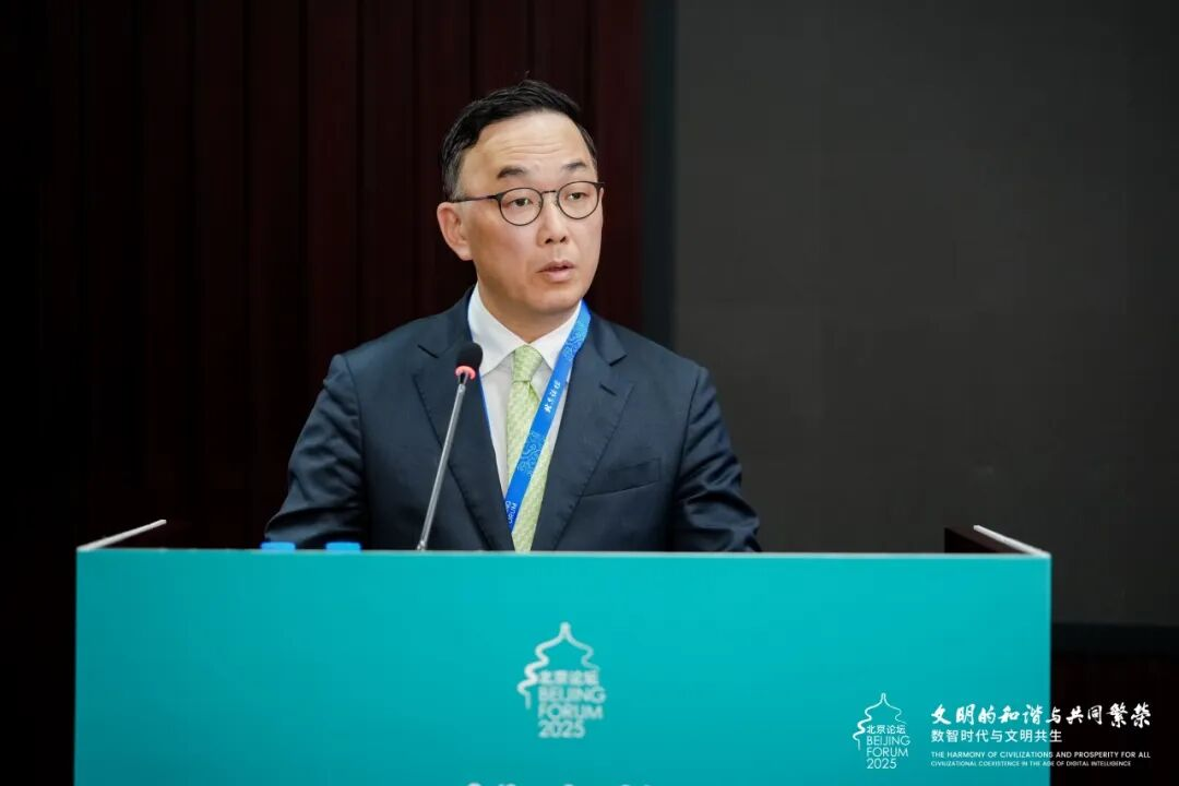 北京大学教育基金会秘书长李宇宁在致辞中指出,面对数智技术的飞速发展,本次论坛将延续四年来与SK集团的合作成果,为中日韩搭建价值共创的桥梁,共同推动数智技术超越工具属性,通过实际行动实现人文与科技的深度融合,让技术创新真正成为推动社会进步的重要力量。
