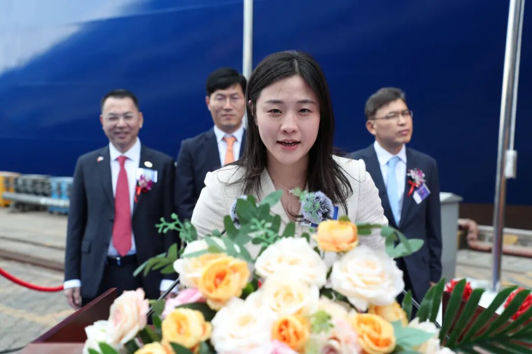 在徐命得、权治五、周旭辉的陪同下,车美兰女士将该船命名为“GLOVIS TRINITY(格罗维视 崔妮蒂)”号。