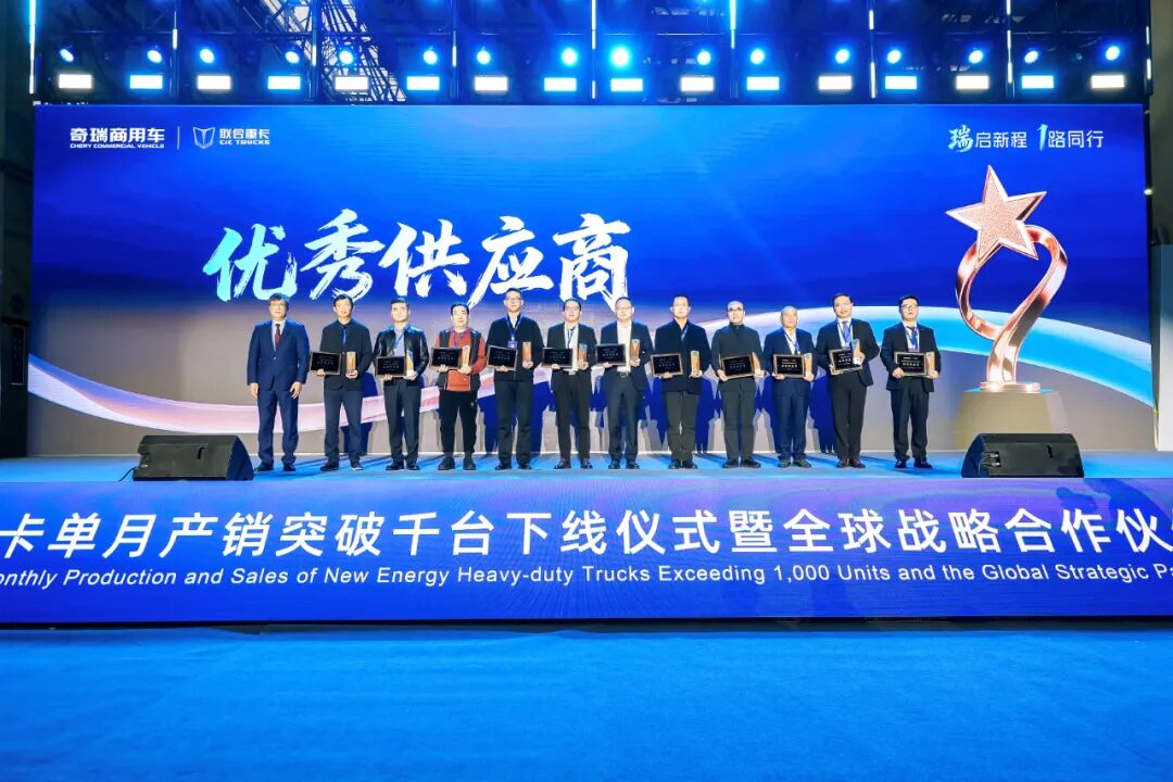 近日,奇瑞商用车在安徽芜湖举行新能源重卡单月产销突破千台下线仪式暨全球战略合作伙伴生态大会,亿纬锂能凭借卓越产品与可靠交付,荣获奇瑞商用车“优秀供应商”奖。亿纬锂能商用车产品线总经理黄红良博士受邀出席。