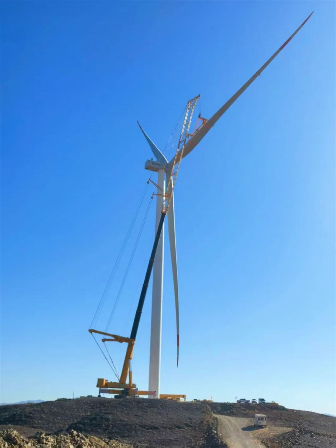 木垒哈萨克自治县作为天山北麓著名的“风光宝库”,是新疆确定的十大风区、五大光区之一,也是“一带一路”能源合作的重要支点。近年来,木垒县积极践行国家“双碳”战略,率先建成全疆首个县级千万千瓦级新能源基地。今年,该县又承担了1000万千瓦新能源建设和并网重任,预计2025年末新能源并网容量将达到2000万千瓦,发电量超过160亿千瓦时,成为全国领先的县级新能源开发示范区。作为木垒县1000万千瓦新能源的“头号工程”和关键工程,国家电投上海电力120万千瓦风电项目总投资51.8亿元,将安装192台6.25MW风力发电机组,配套建设220千伏汇集站和30万千瓦/120万千瓦时储能系统。其中,中船科技为该项目提供96台6.25MW风电机组,目前随着全部机组的发运交付,吊装与调试工作正同步推进中,并进入加速冲刺阶段。