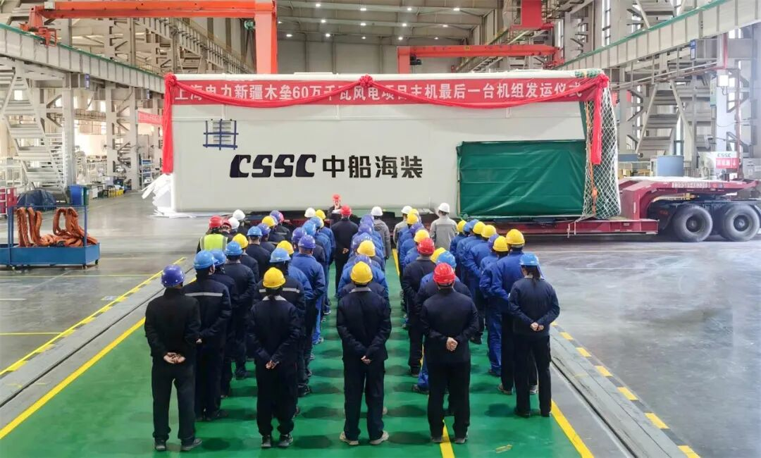 11月12日,中船科技新疆哈密基地为新疆木垒1000万千瓦新能源“头号工程”——国家电投上海电力新疆木垒120万千瓦风电项目生产的最后一台机组成功发运,标志着中船科技为该项目提供的96台机组全部圆满交付“收官”,将为项目实现全容量并网发电提供最强“助攻”,也将为木垒县2025年度实现新增1000万千瓦新能源目标贡献硬核力量