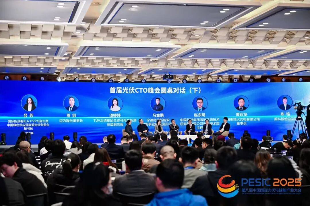 在当天下午举办的“CTO圆桌论坛”上,TÜV北德集团全球可再生能源高级副总裁、全球智慧能源中心总裁兼大中华区副总裁须婷婷,与迈为董事长周剑、美科股份COO陈铭、湖州市鹑火光电有限公司董事长黄跃龙、中国华能集团清洁能源技术研究院光伏技术部主任赵东明、宁德时代新能安储能事业部中国区总裁马金鹏等嘉宾,就“光储融合及未来发展前景”进行了热烈讨论。