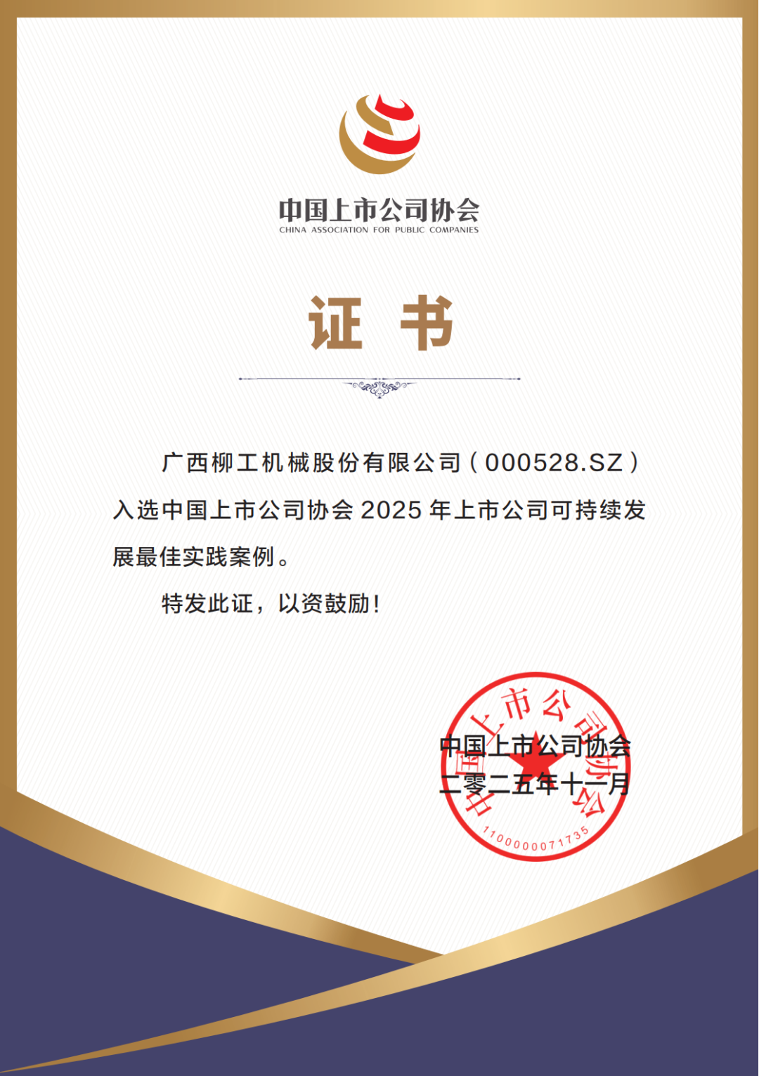 本次大会由中国上市公司协会主办,汇聚监管部门、行业专家及近500家上市公司代表。柳工作为工程机械领域绿色转型的标杆企业,其可持续发展实践获得评审委员会一致认可。