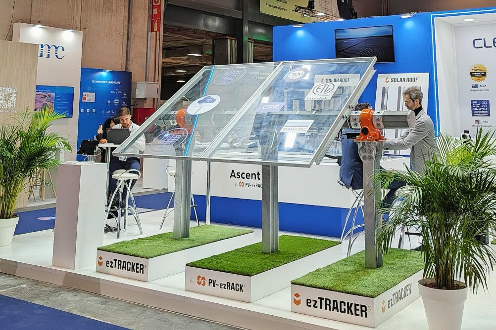 数字智能光伏跟踪解决方案ezTracker D1P120 实现多项技术突破:组件排布采用零间隙技术,提升土地利用率,降低结构成本超5%;结构设计创新使用八角管,融合方管抗弯与圆管抗扭优势,性能提升超60%,零部件减少30%,安装效率提高50%,配合八角管和檩条抬高方案,优化双面组件发电效率。
