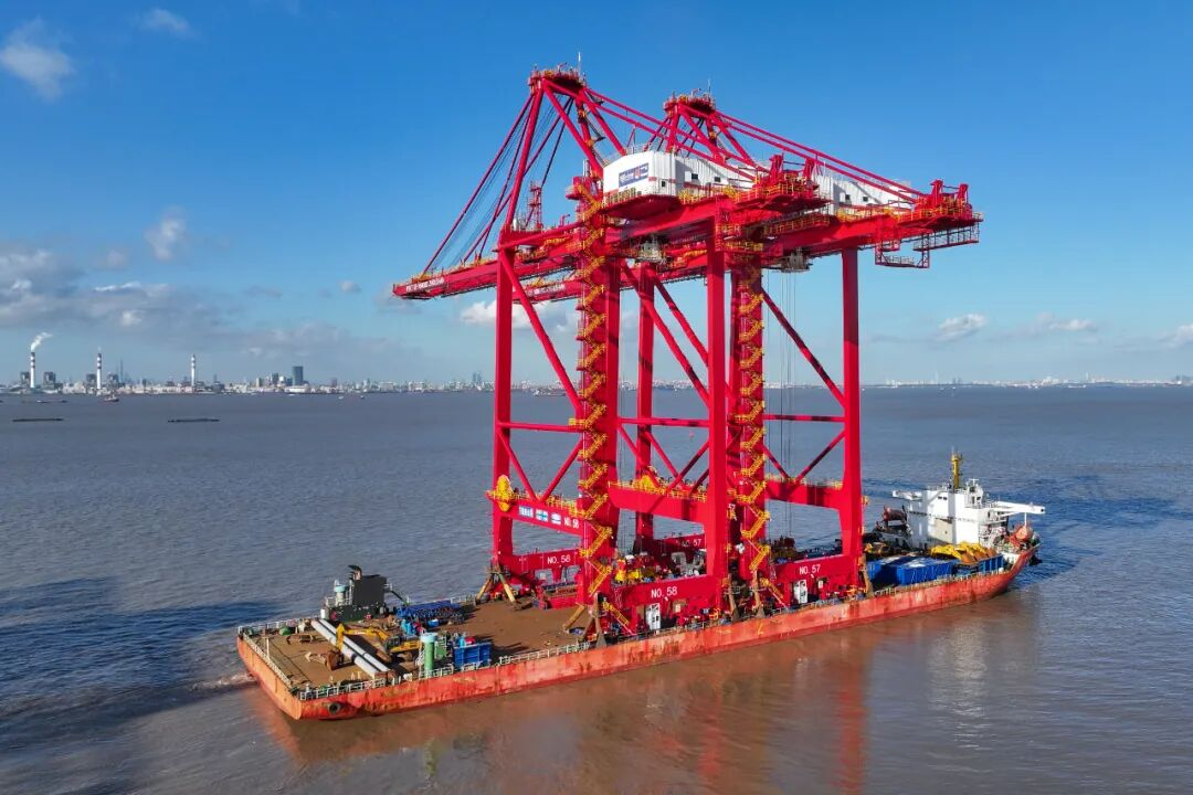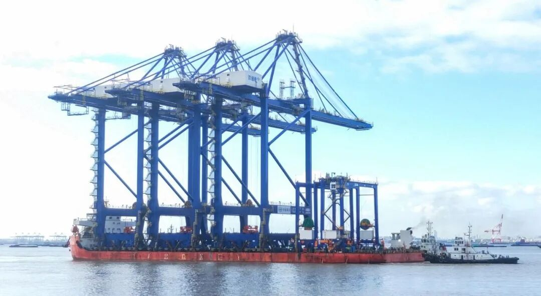 近日,宁波梅东码头2台岸桥从振华长兴分公司离港,前往用户码头。该项目吊具下额载65吨,跨距35米,起升高度轨上52米、轨下20米,外伸距70米、后伸距18.5米。