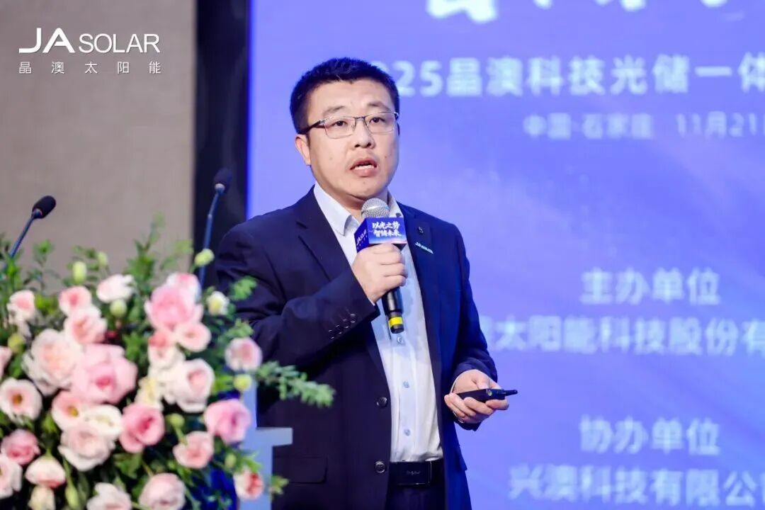 晶澳科技中国区市场解决方案部部长在分享中,系统性地阐述了晶澳科技从高效组件到智能储能的一体化布局,详细介绍了针对工商业园区、户用别墅、乡村振兴等不同应用场景的定制化解决方案。通过对比分析,凸显了晶澳科技在“全生命周期度电成本”“智能化能源管理”和“系统整体可靠性” 等方面的显著优势,让客户对晶澳科技光储系统的价值有了更全面、深刻的认识。