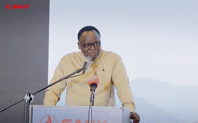 随着发布会进入高潮,现场气氛热烈。在全场嘉宾瞩目下,Paul C. Kabuswe、张键、王晶军、代晴华、郭瑞广以及客户代表等一同上台,共同启动发布仪式。这一象征性举动,标志着三一绿色矿山微电网方案正式全球发布,也预示着非洲能源转型迎来新契机。