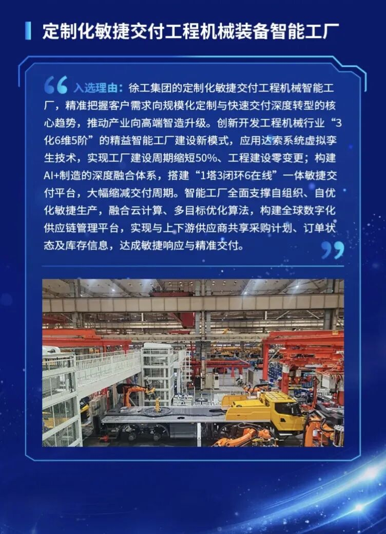 此次成果入选,不仅是对徐工智能工厂创新的认可,更是对全球智能制造领域定制化发展的积极展望。徐工正在以自身验证成功的先进模式和标准,向产业链赋能,为中国装备制造业整体智能化水平的提升贡献徐工方案与智慧。