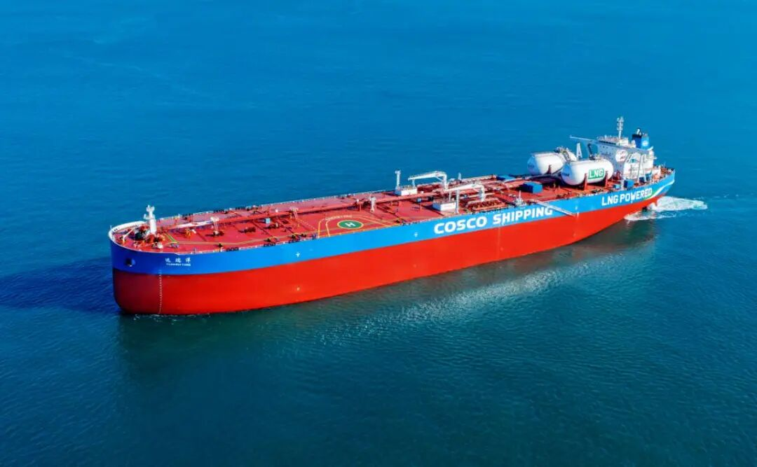 全球首艘LNG双燃料动力超大型油船“远瑞洋”轮于2022年交付中远海运能源运输股份有限公司。该船采用LNG作为主燃料,被授予天然气燃料Natural Gas Fuel、智能能效i-Ship(E)、绿色船舶Green Ship-I等附加标志,船舶综合节能及性能指标居于世界领先水平。在以LNG作为船舶动力源时,碳排放可较普通燃油船舶降低约20%,硫氧化物减排99%,颗粒物减排98%,氮氧化物排放满足国际海事组织(IMO)Tier III要求。“远瑞洋”轮最大亮点之一在于LNG储气系统。该系统采用C型储罐设计,于左右舷各设一个以C型3500立方米LNG低温储舱为主体的LNG加注站,加注速率达每小时1500立方米,可实现LNG和燃料油之间的自由切换。