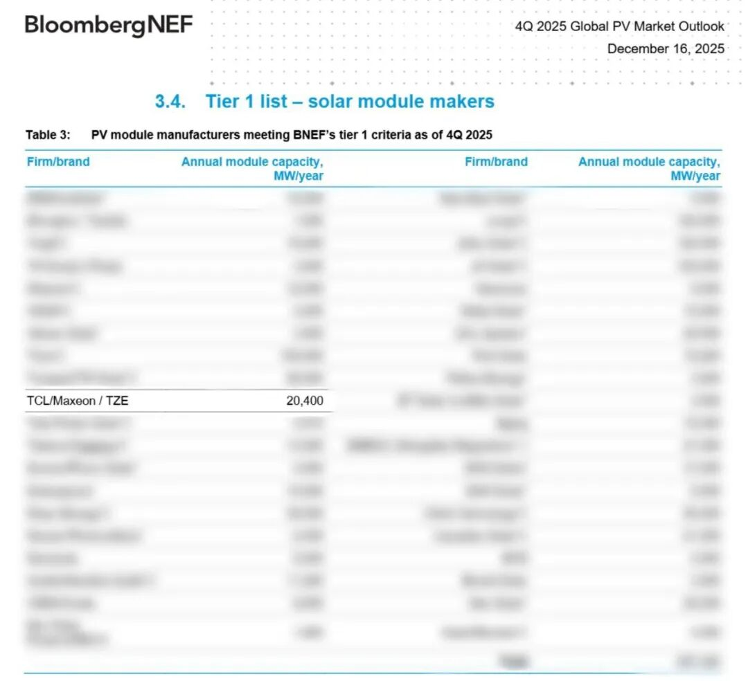 近日,彭博新能源财经公布最新全球光伏组件制造商Tier 1名单,TCL中环旗下TCL Solar凭借其一贯的卓越表现,继续稳居这一全球顶级行列。这不仅是一张“季度成绩单”,更是对TCL Solar长期稳健运营与深层市场信任的权威背书。