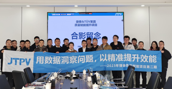 光伏电站生命周期以十年计,质量管理工作需要落实到每日细节。捷泰科技推动"质量赋能提升"项目,旨在确保每一片电池在时间维度上保持可靠性能:效率表现可预期、衰减路径可解释、失效风险可管理。