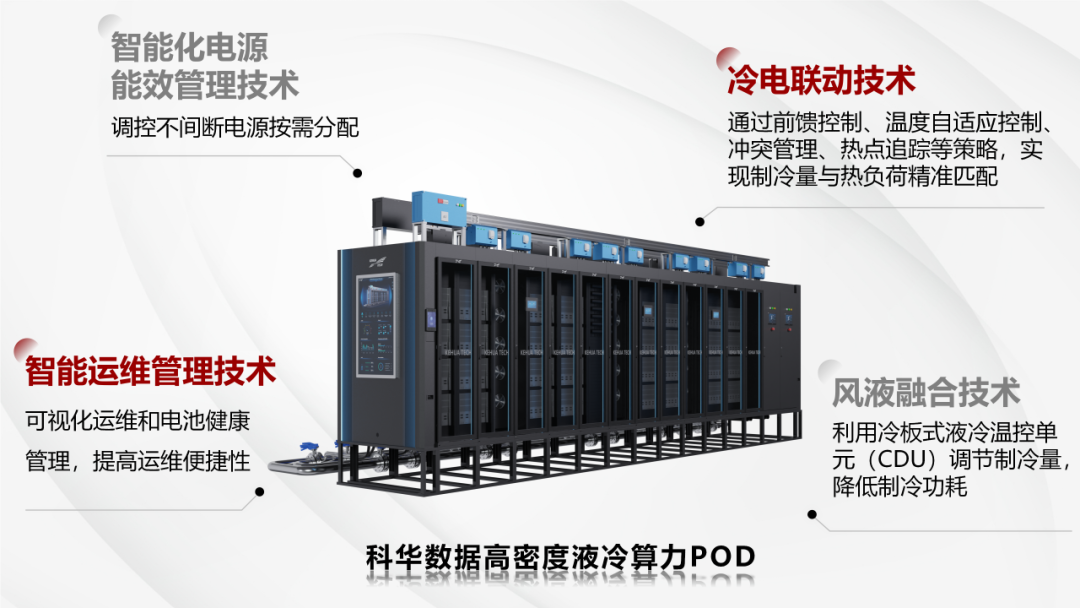 该产品是科华数据为沐曦高性能GPU服务器集群自主研发的新一代算力基础设施,以创新技术架构,应用微模块风液融合智慧节能技术,实现与沐曦算力集群的深度适配,可高效支撑AI训练、推理及通用计算等多样化场景,为高性能算力需求提供稳定、高效、灵活的实时保障。