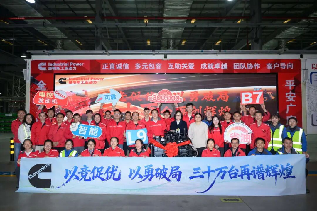 从首台到30万台,从深耕到跨越,广西康明斯工业动力有限公司始终以匠心打磨产品,铸就了可靠耐久、省油高效、智能精准的核心优势,此次第30万台发动机荣耀下线,不仅体现了广西康明斯工业动力有限公司制造实力与市场影响力的稳步提升,也印证了康明斯深耕中国工程机械领域的坚定承诺,更展现了康明斯人凝心聚力、奋勇争先,不断驱动业务攀升、勇启全新征程的激昂号角。