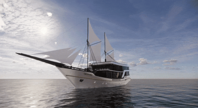 作为印尼极具代表性的传统木质船舶,以精湛的手工造船工艺、独特的船型设计和深厚的文化底蕴闻名于世,既适配高端私人巡航需求,也可满足特色旅游观光等租赁服务。本次试航的PHINISI船长为48米,船宽9米,设计吃水3米,拥有更大的空间,为客户带来更舒适的休闲体验。