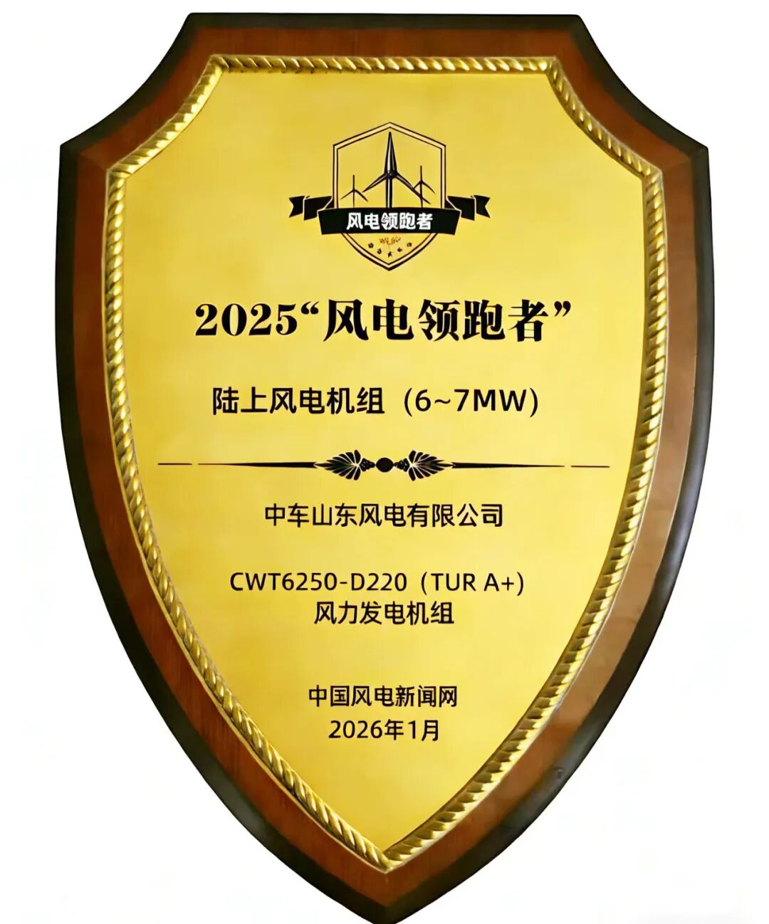 2026年1月8日,第五届“风电领跑者”技术创新论坛在北京成功举行,中车山东风电公司凭借硬核科技实力与卓越产品表现,一举斩获 “最佳陆上风电机组” 与 “最佳服务产品奖” 两项行业重磅大奖。此次双奖加冕,不仅是对公司深耕技术、锻造精品的高度认可,更彰显了公司在风电行业的标杆引领价值。