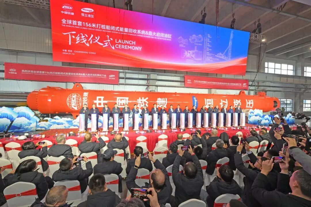 1月16日上午,全球首套156米打桩船闭式能量回收系统及最大启闭液压缸下线仪式在江苏常州恒立液压总部成功举行。