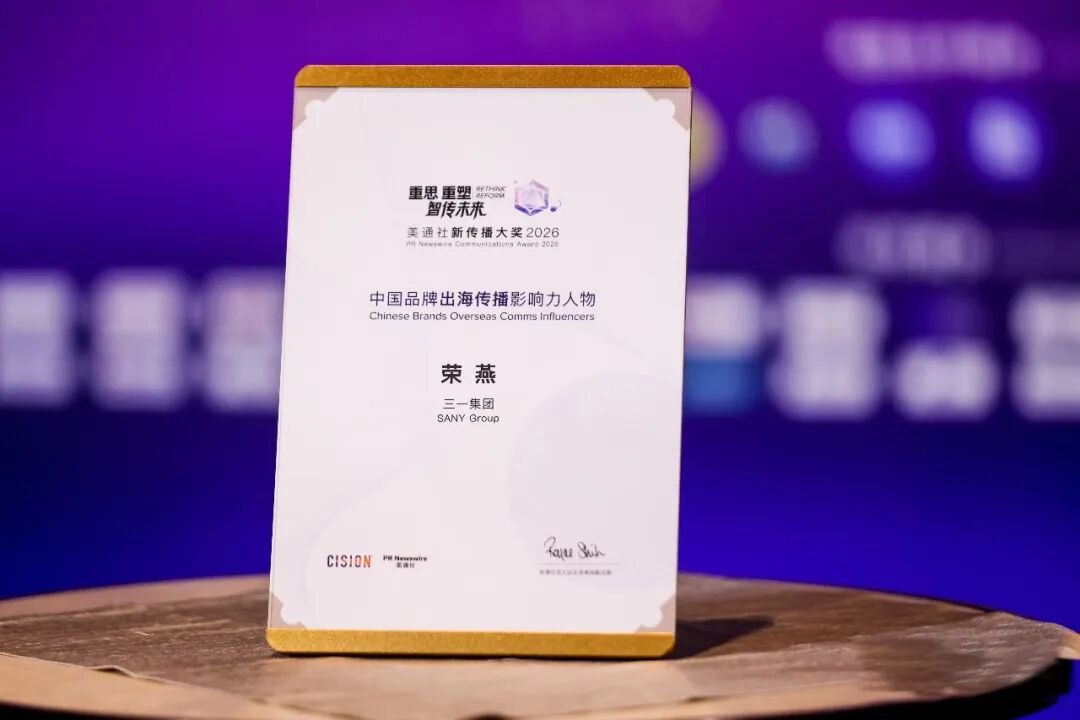 1月15日,2026美通社新传播年度大奖颁奖典礼圆满落幕。凭借在品牌全球化方面的卓越表现,三一集团脱颖而出,一举斩获“年度传播活动大奖”与“中国品牌全球影响力年度大奖”两项殊荣,集团全球品牌总监荣燕获评中国品牌出海传播影响力人物。