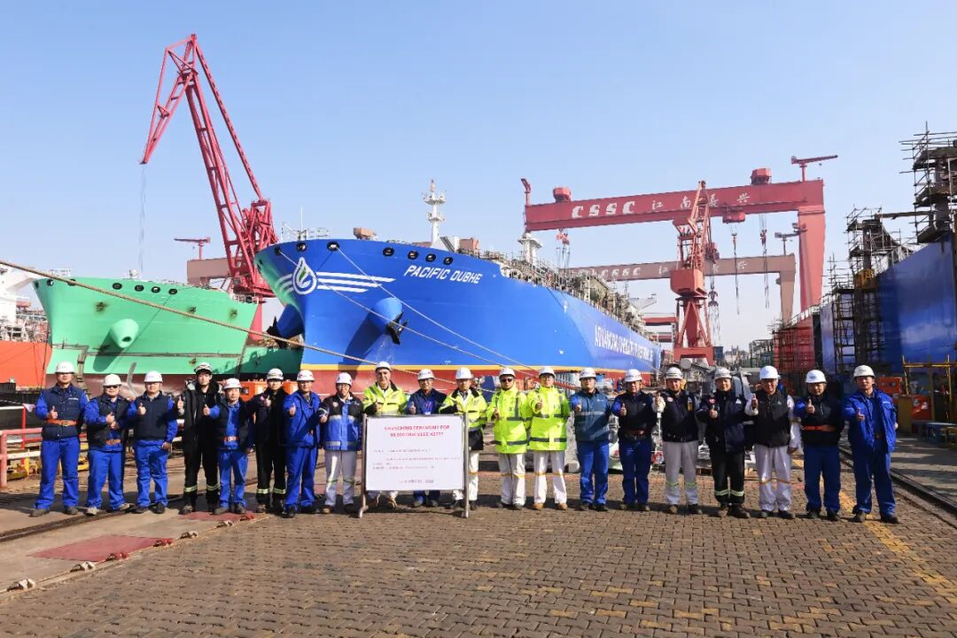 同步起浮的两艘船舶分别是公司为万华化学公司建造的首艘93000立方米VLAC和为太平洋气体船公司建造的99000立方米VLEC系列船第三艘,建造团队分别在前系列或前类型船的经验上增强完整性,力争提升整船出坞状态,为年度七批次十六艘船出坞打响头阵!