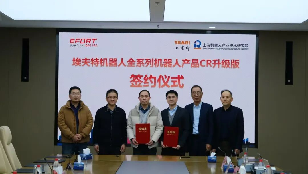 2026年1月22日,埃夫特智能机器人股份有限公司(以下简称“埃夫特”)与上海机器人产业技术研究院(以下简称“上研院”)在沪隆重举行全系列机器人产品CR认证战略合作签约仪式。