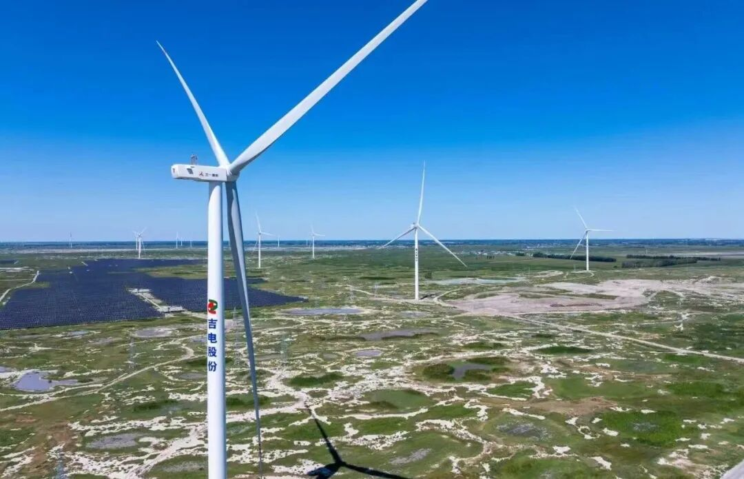 由三一重能参与供货的全球最大规模一次性投产绿色合成氨单体项目——吉电大安风光制绿氢合成氨一体化示范项目,获评“中国风能人·创领先锋奖”。项目采用50台三一重能5.0MW钢塔风电机组、8台6.25MW混塔风电机组混排布置,创新应用“源网荷储一体化、绿氢消纳绿电、绿氨承载绿氢”的系统模式,并依托电源管理与柔性控制技术,实现了风电所发绿电的全部自用与就地消纳。