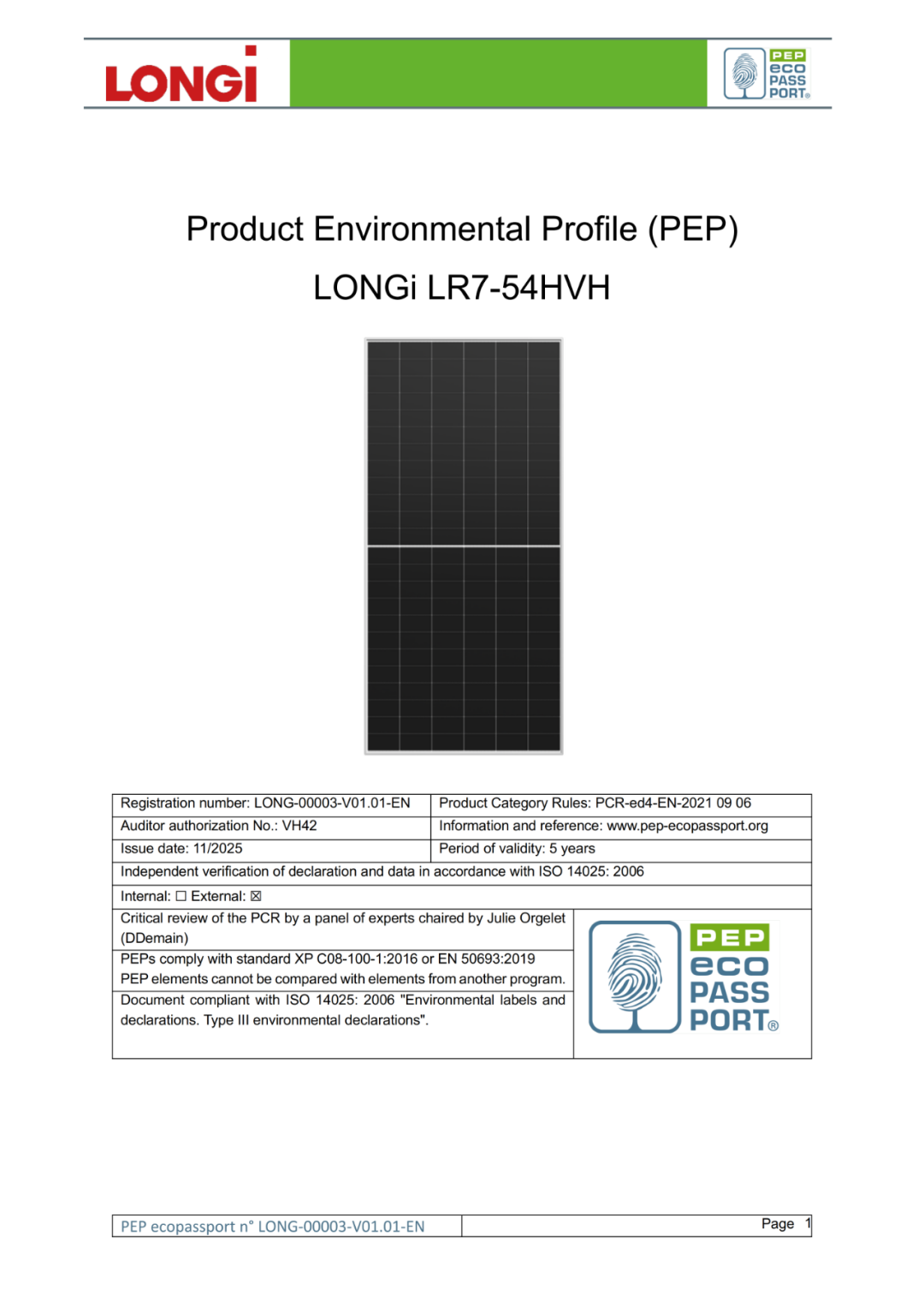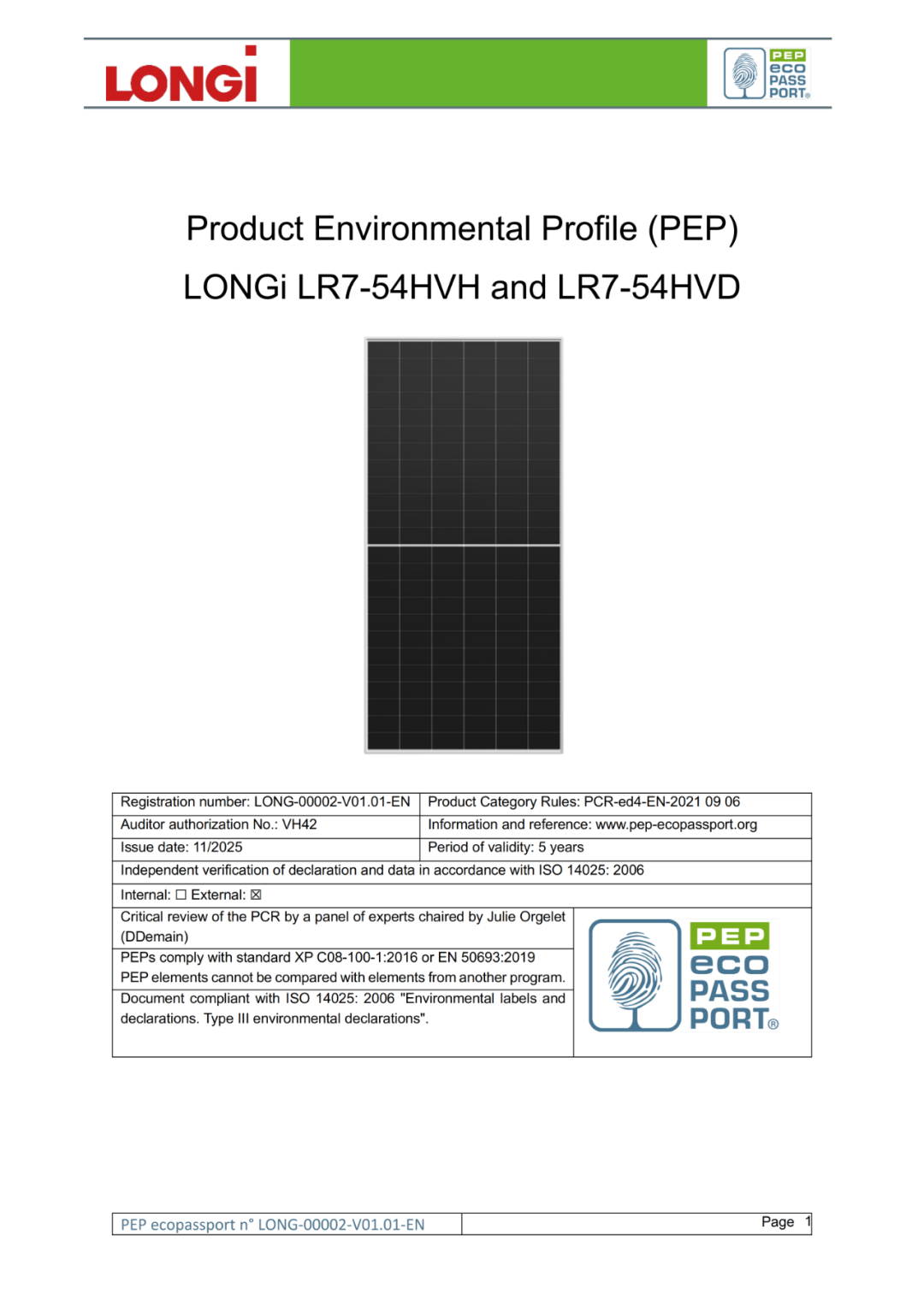 近日,在TÜV南德意志集团(以下简称“TÜV南德”)的专业支持下,隆基旗下EcoLife 、Hi-MO X10双玻、Hi-MO X10单玻等三款组件成功完成生命周期评价(LCA),并首批完成法国PEP(Product Environmental Profile,产品环境概况)注册