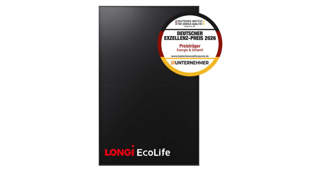 日前,隆基绿能旗下高端户用光伏品牌EcoLife系列再获国际权威认可。其面向户用市场推出的500W太阳能组件,凭借在高效发电、气候适应性与美学融合等方面的综合卓越表现,荣获2026年德国卓越奖“能源与环境”类别大奖