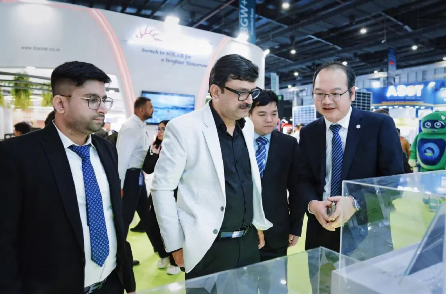 通威太阳能团队在海外展会现场、拜访现场与客户深入交流