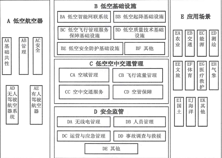 指南坚持“安全为基、创新驱动、产业协同、国际接轨”,低空经济标准体系结构包括低空航空器、低空基础设施、低空空中交通管理、安全监管和应用场景五大核心领域。