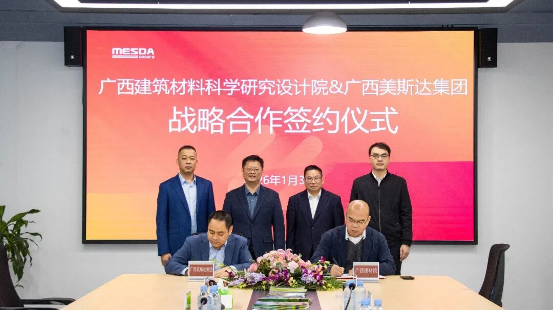 1月31日,广西建材院有限公司与美斯达集团在南宁签署《战略合作框架协议书》。双方将在设备设计研发、生产制造、市场推广及产学研深度融合等多个领域达成长期战略合作伙伴关系。广西建材院党委副书记、副董事长、总经理(主持全面工作)梁哲与美斯达集团董事长黄康华共同见证签约。