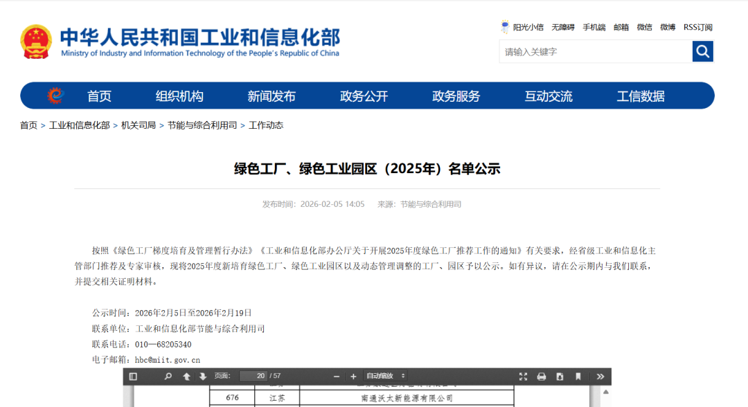 春启新程,喜迎开门红!近日,国家工业和信息化部正式公示了2025年度国家级绿色制造名单,沃太能源凭借在该领域的卓越深耕与突出成效,成功上榜荣膺“国家级绿色工厂”称号,再添一项国家级权威认证,为新一年高质量发展注入强劲动力。