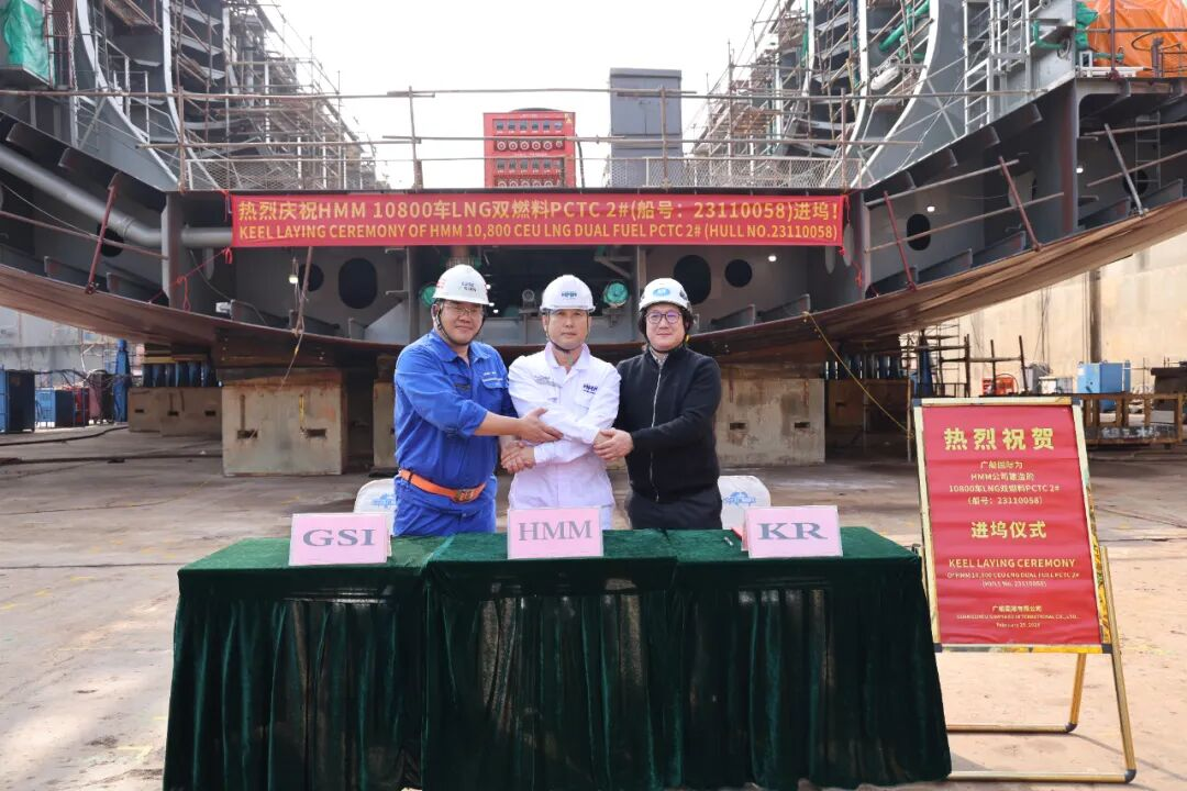 2月25日,中船广船国际联合中船贸易为韩国HMM公司建造的10800车LNG双燃料汽车运输船(PCTC)2号船顺利进坞,以奋楫扬帆之势开启绿色海运新篇章。