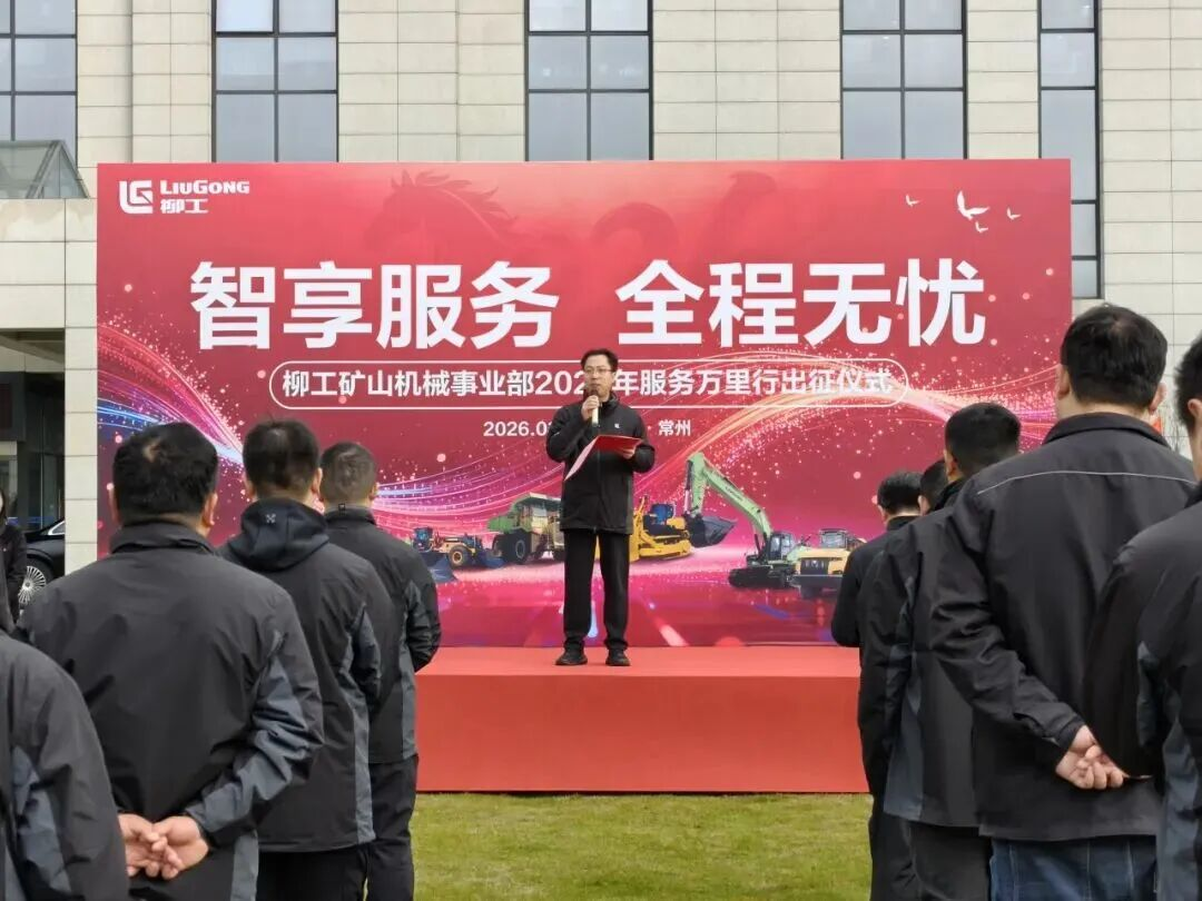 近日,柳工矿山机械事业部“2026年服务万里行出征仪式”在常州基地举行。本次活动以“智享服务,全程无忧”为主题,旨在通过深入矿区一线,洞察客户需求、提升客户感知、助力客户运营,全面落地柳工“三全”战略,为“十五五”开局注入强劲动能。