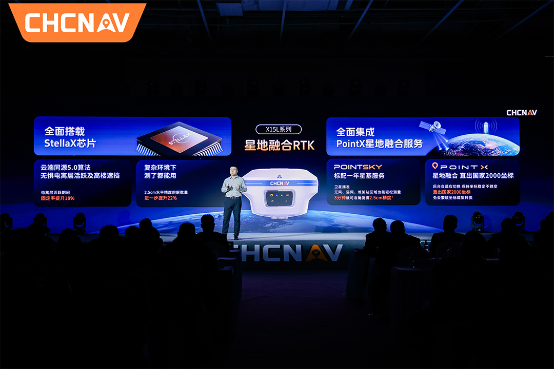 3月13日,以“感知无界,智测未来”为主题的 2026 华测导航春季新品发布会在上海举行,正式发布PointX 全球星地融合增强服务、StellaX 星地融合芯片、如是 GS5 测量系统、D60 双频测深仪等新产品、新服务