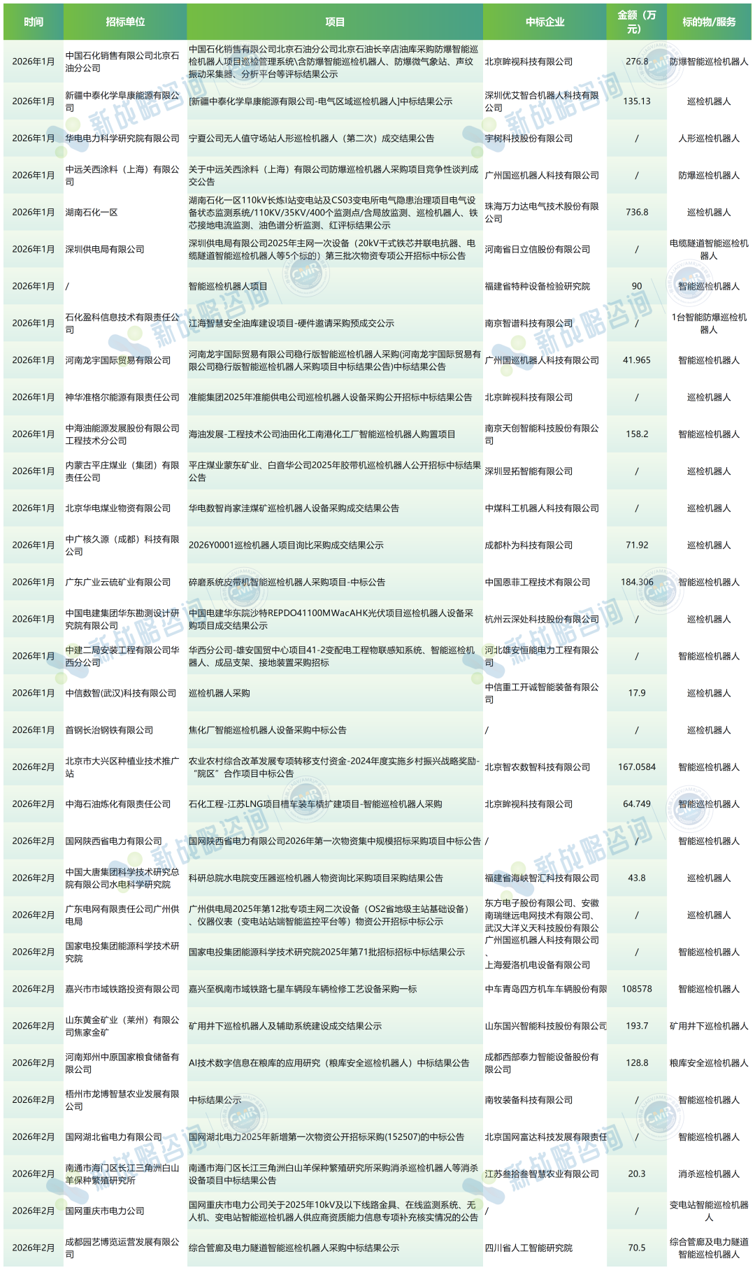 开年两月节奏明显偏快,巡检机器人市场在延续2025年增长趋势的同时,也呈现出应用场景逐渐扩展、企业类型更加多元的特点。