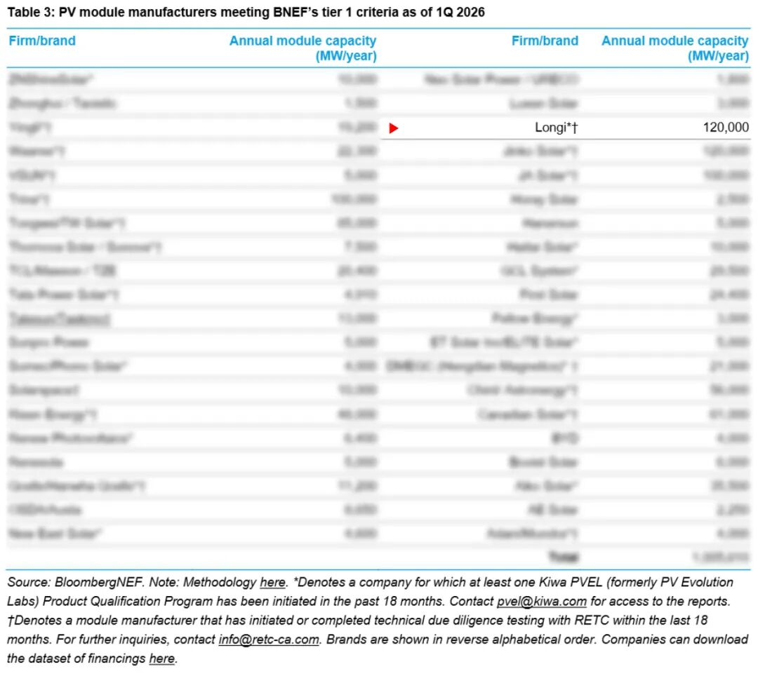 彭博新能源财经的分级机制以严谨与客观著称,是全球新能源项目投融资与采购的重要参考标准。其核心评判逻辑聚焦“可融资性”,即企业产品能否获得银行无追索权债务融资,同时明确要求厂商必须拥有自主生产设施,并以自有品牌开展销售。