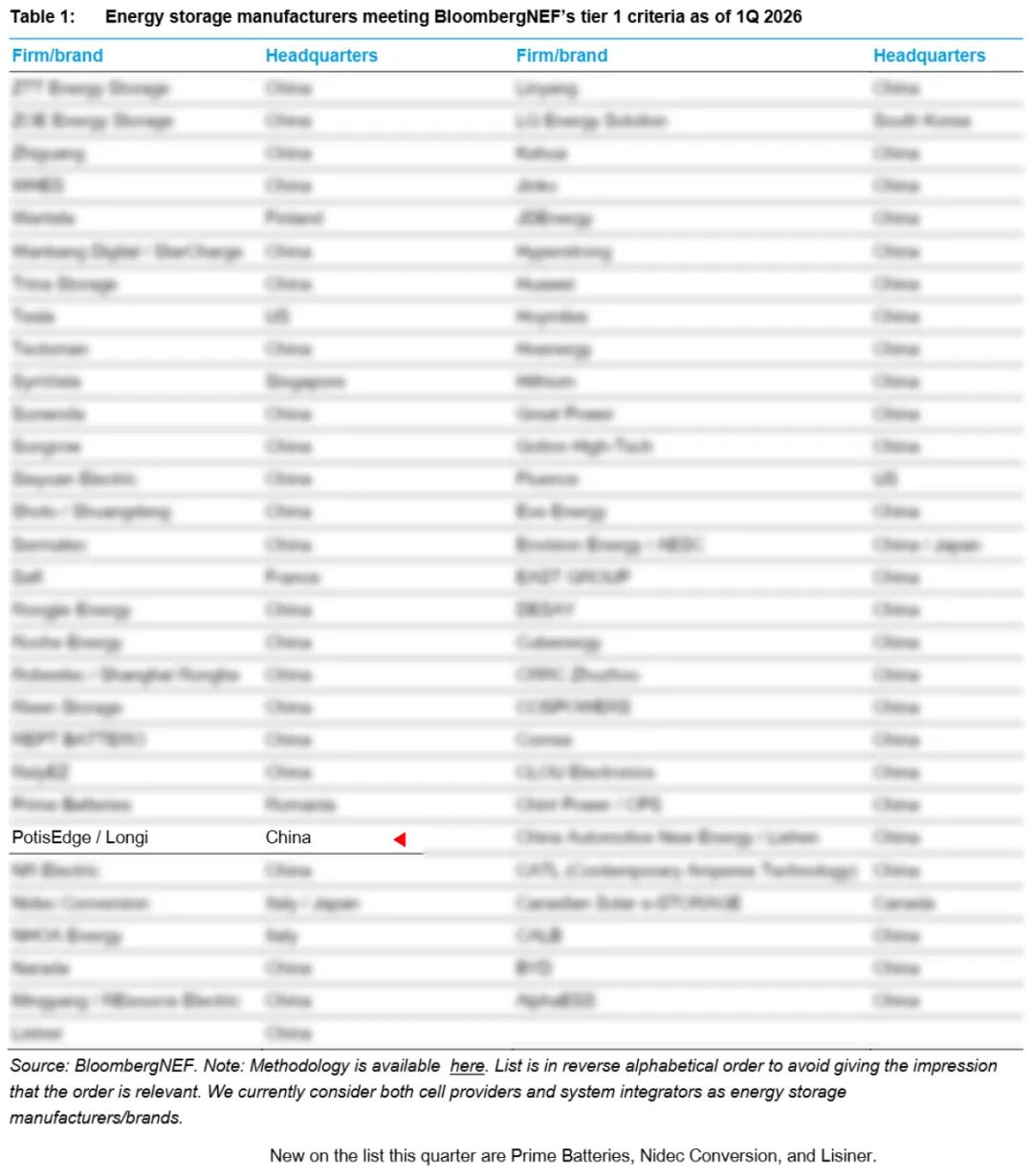 而在储能领域,BNEF Tier 1评选标准同样严苛:该体系基于项目部署所证明的可融资性,为全球数百家固定式储能制造商提供透明化分级。入选品牌必须拥有自主制造工厂,且在过去两年内为至少10兆瓦或10兆瓦时(取较高者)的项目提供电池及储能系统。