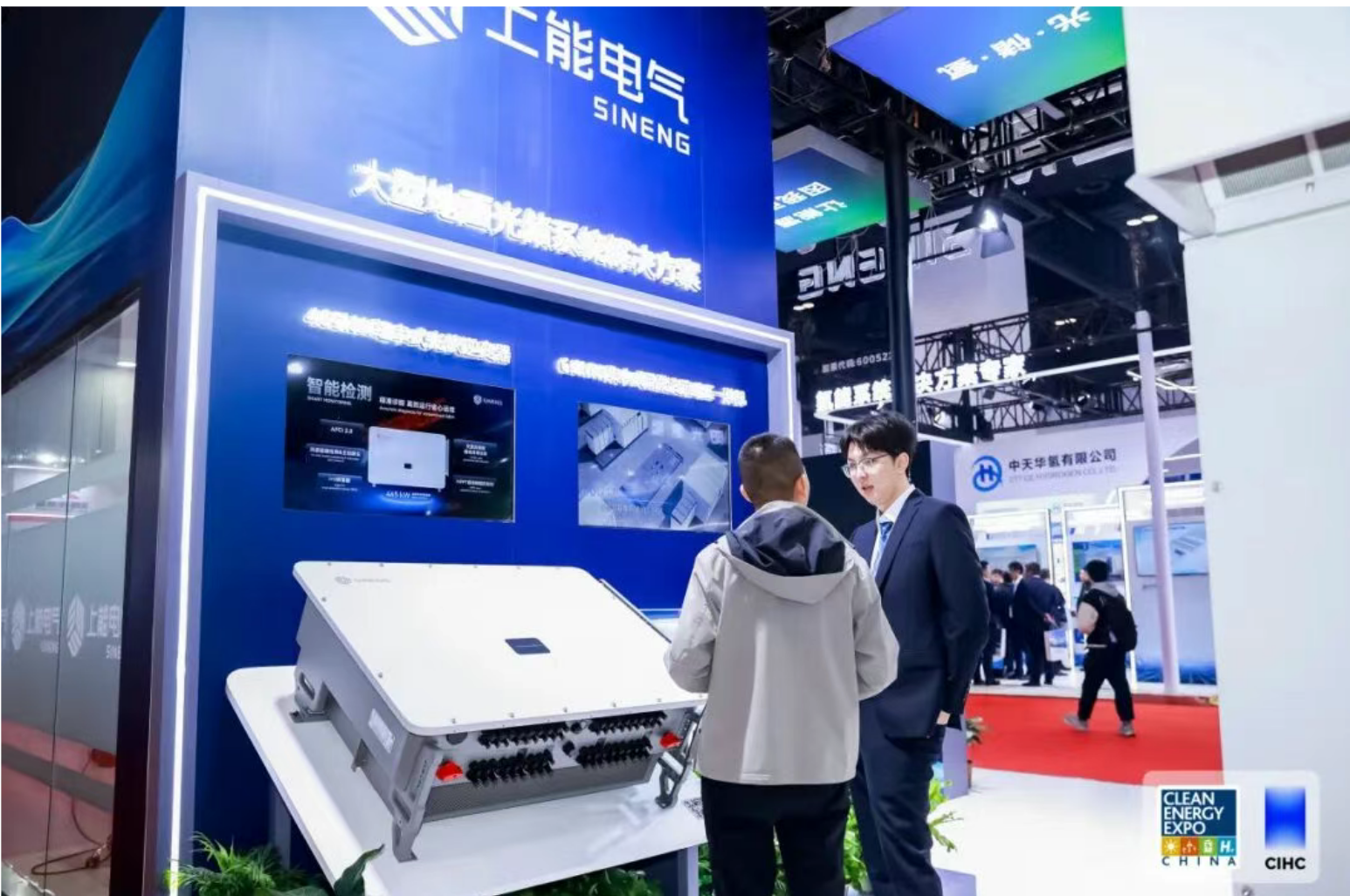 展会现场,上能电气还创新性展出了“源、储、荷、网”四位一体的光储氢全链条解决方案,通过将柔性制氢电源、构网型储能变流器与光伏逆变器协同工作,为并离网、强弱电网及交直流侧等多场景提供可靠支撑。