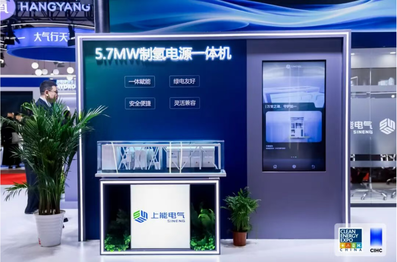 上能电气本次展出了柔性制氢系统解决方案,包含单机和一体机方案。5.7MW制氢电源可完美适应可再生能源波动,适配0-820V超宽电压范围,有效提升能源的利用效率。